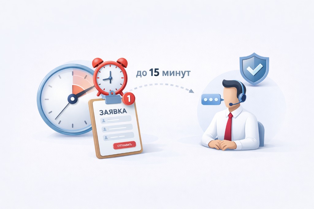 В рабочее время менеджер обязан выйти на связь в течение 15 минут после поступления заявки. Так мы фиксируем единый стандарт сервиса для всех клиентов.